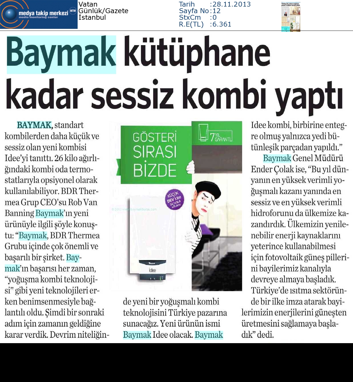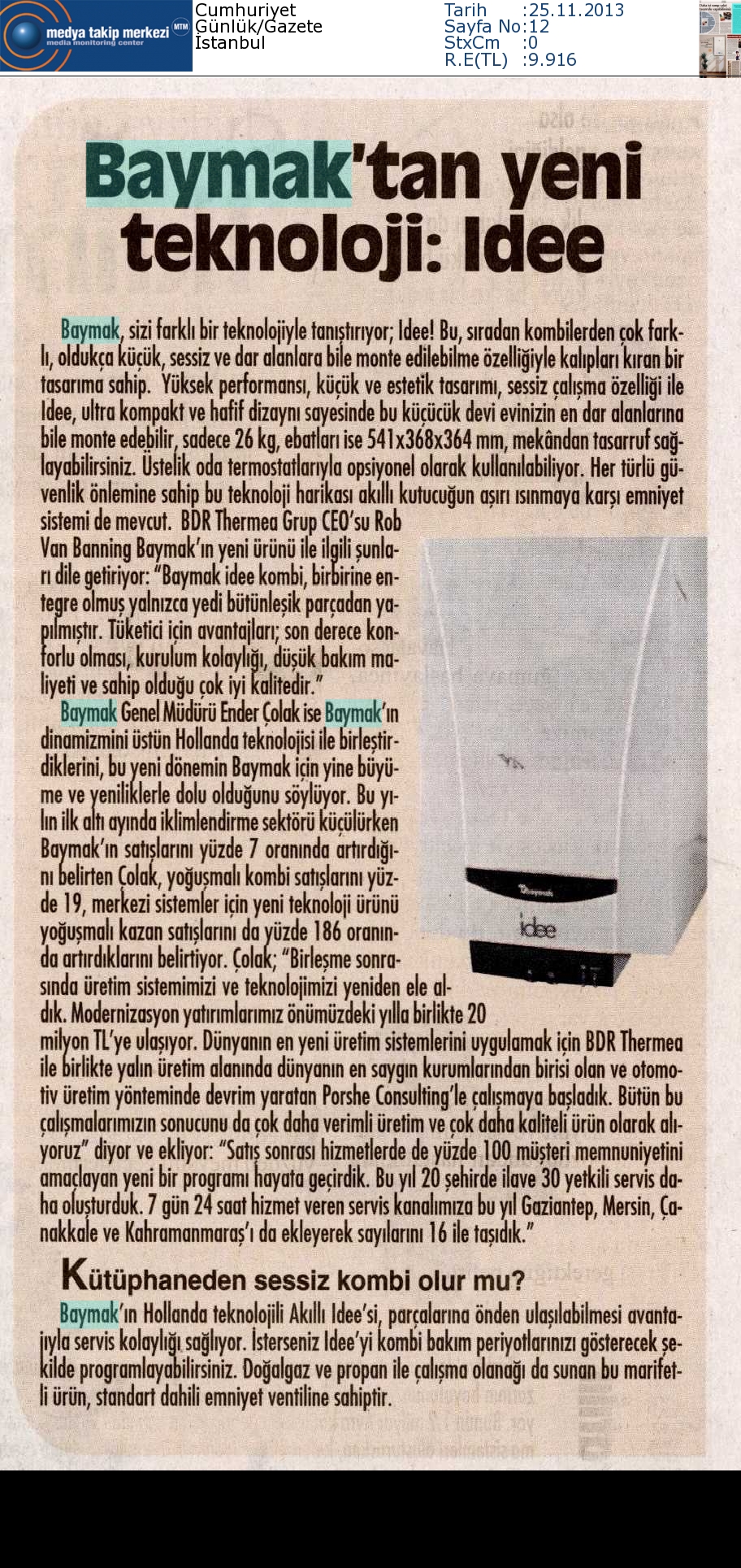 BAYMAK'TAN YENİ TEKNOLOJİ: İDEE 25.11.2013 Cumhuriyet
