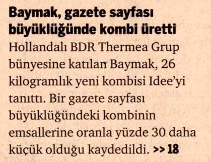 BAYMAK, GAZETE SAYFASI BÜYÜKLÜĞÜNDE KOMBİ ÜRETTİ 01.11.2013 Dünya