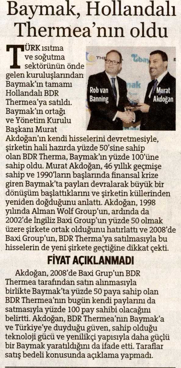 BAYMAK, HOLLANDALI THERMEA'NIN OLDU 28.03.2013 Hürriyet