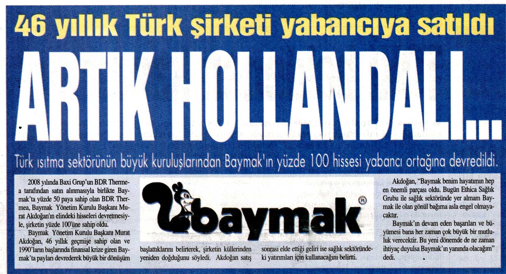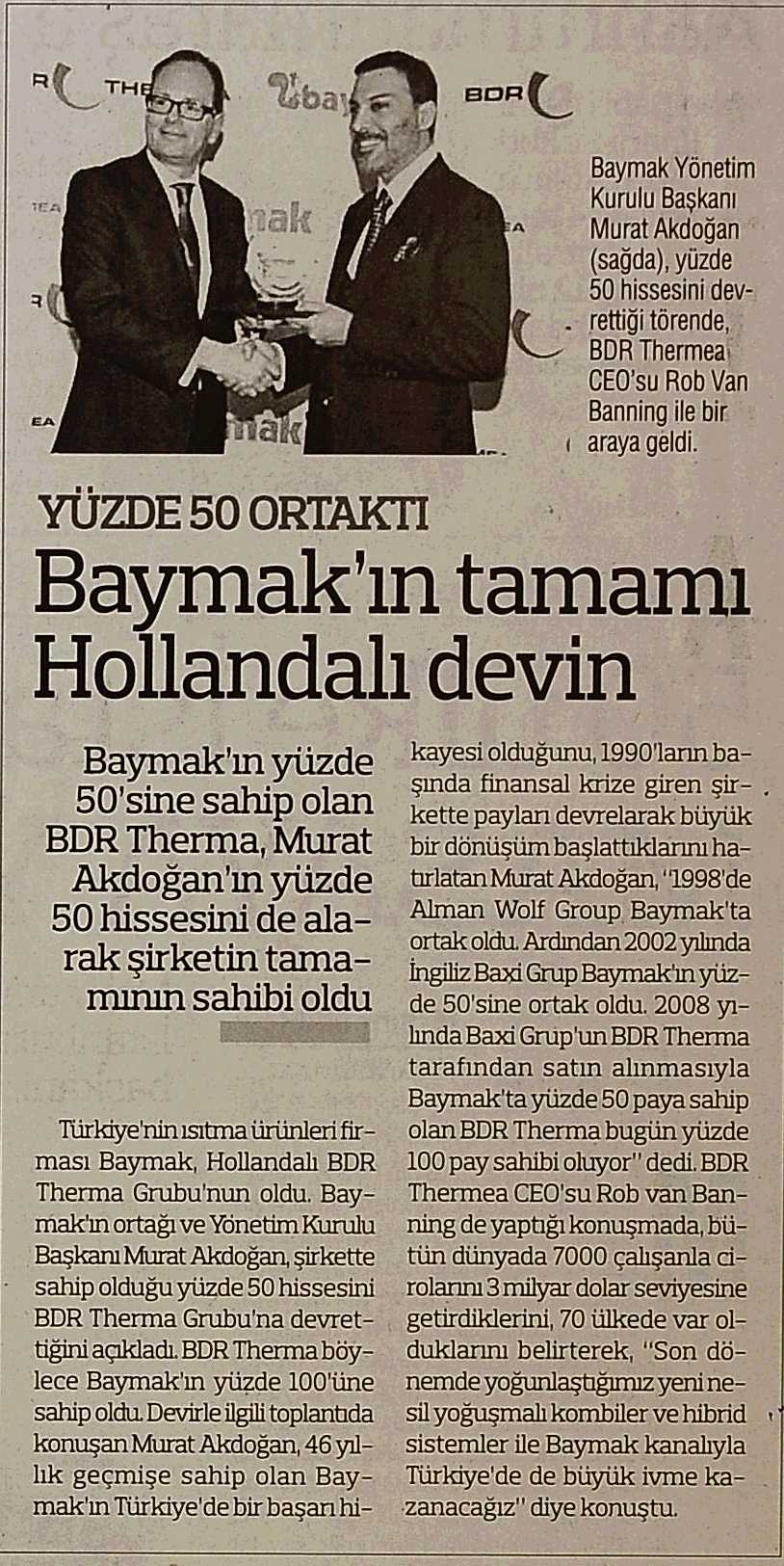 BAYMAK'IN TAMAMI HOLLANDALI DEVİN 28.03.2013 Türkiye Gazetesi