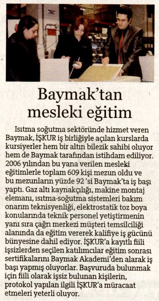 BAYMAK'TAN MESLEKİ EĞİTİM 03.02.2013 Hürriyet İnsan Kaynakları