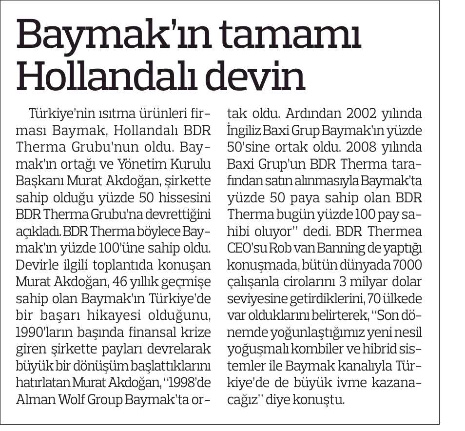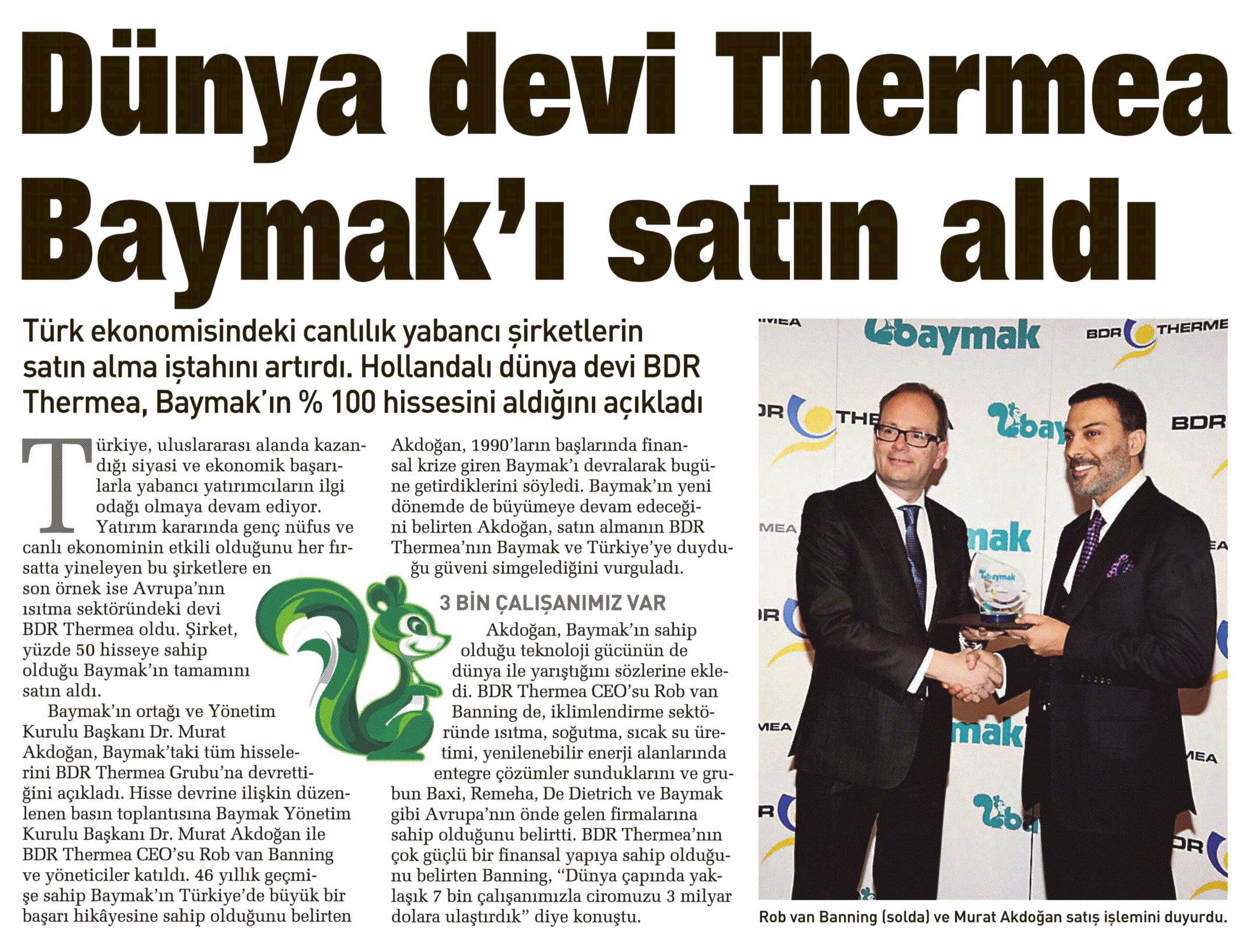 DÜNYA DEVİ THERMEA BAYMAK'I SATIN ALDI 28.03.2013 Sabah