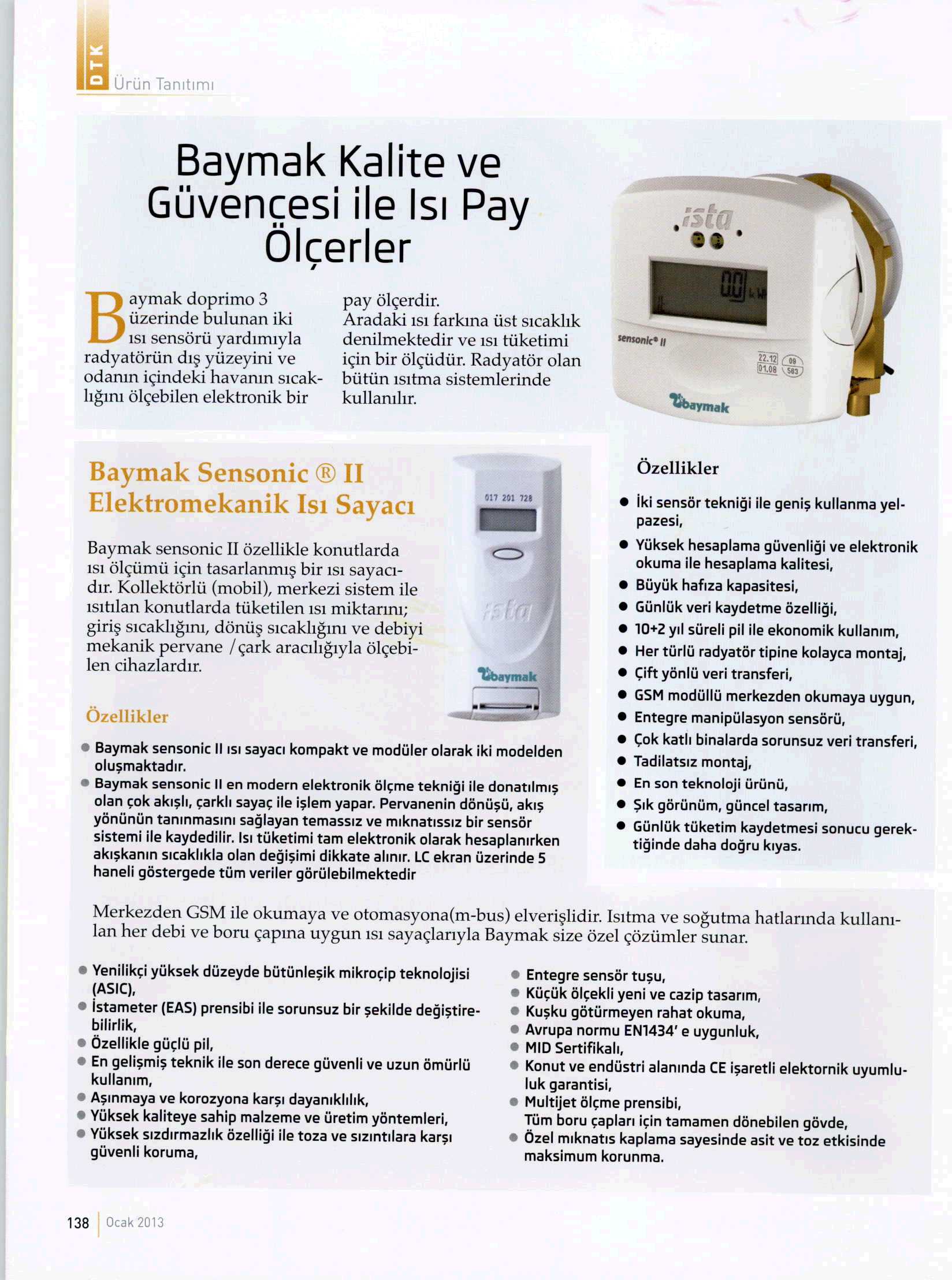 BAYMAK KALİTE VE GÜVENCESİ İLE ISI PAY ÖLÇERLER 01.01.2013 Doğalgaz Tesisat Klima