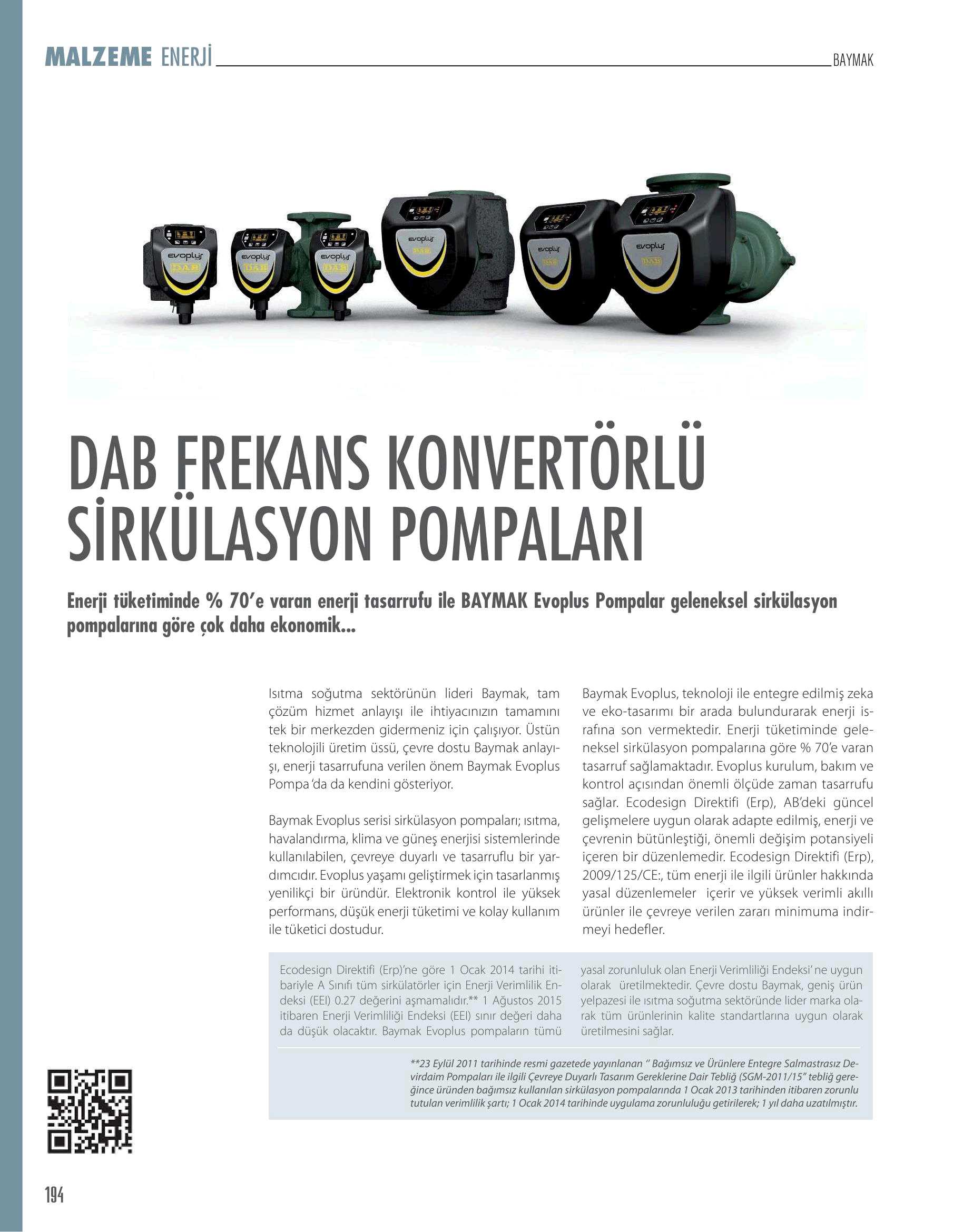 DAB FREKANS KONVERTORLU SİRKÜLASYON POMPALARI 01.02.2013 İnşaat Dünyası