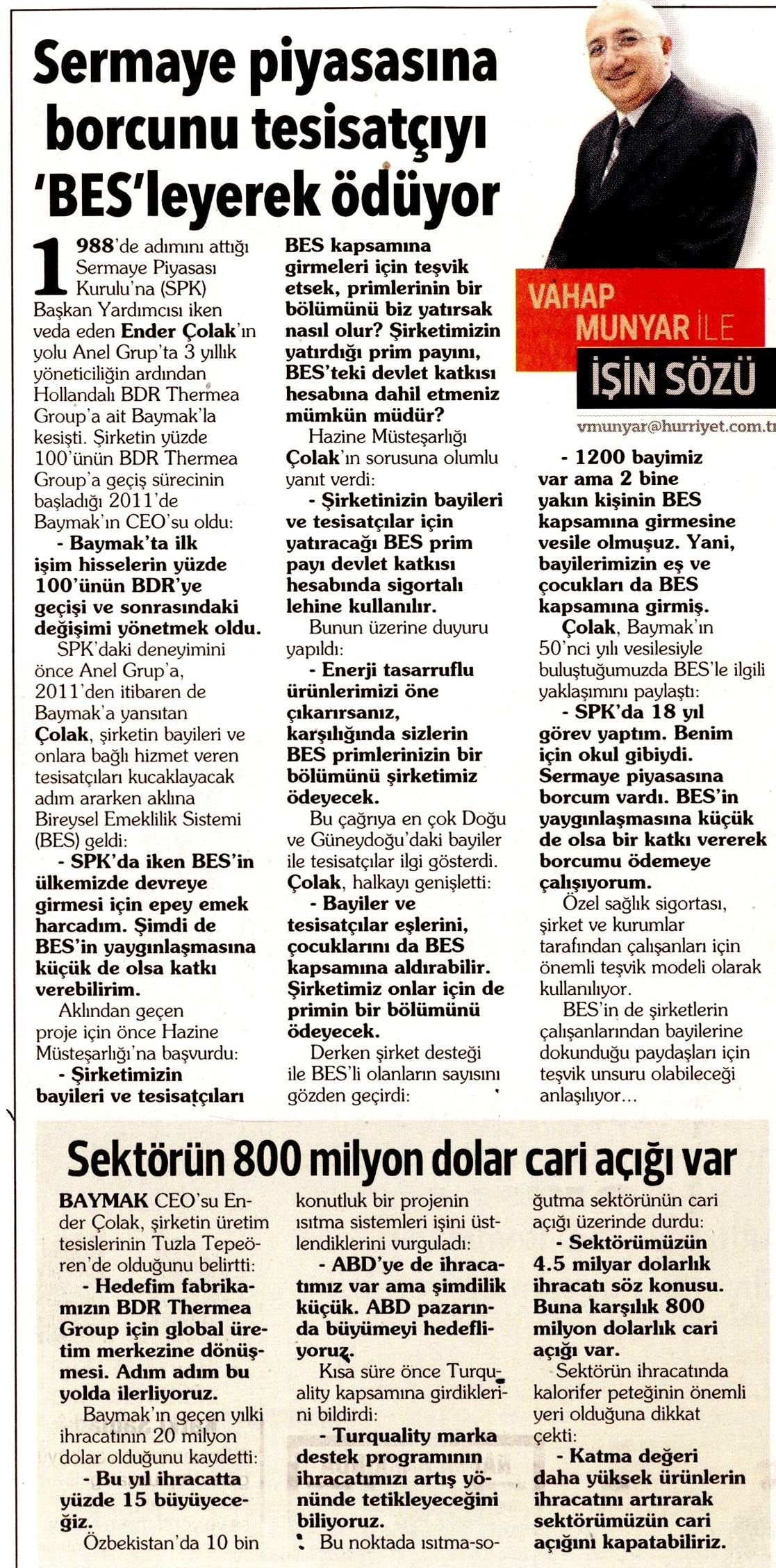 Sermaye Piyasasına Borcunu Tesisatçıyı 'BES'leyerek ödüyor.