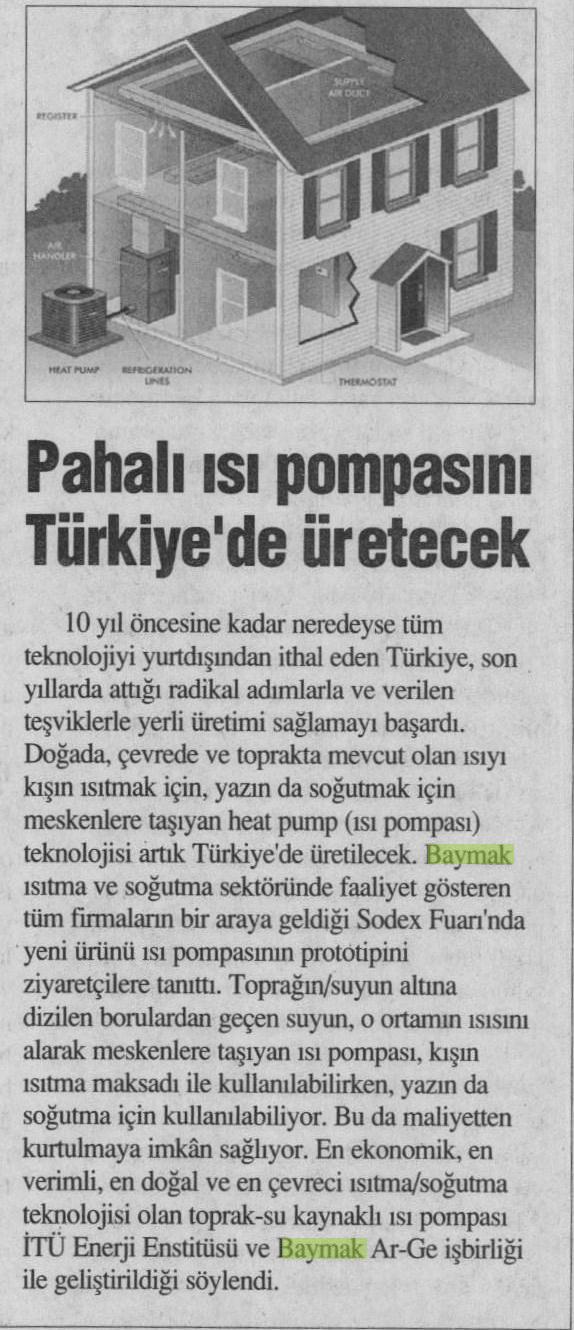 Pahalı ısı pompasını Türkiye'de üretecek 08.05.2012 İstiklal Gazetesi