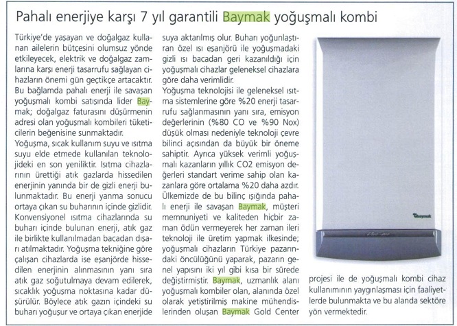 Pahalı enerjiye karşı 7 yıl garantili Baymak yoğuşmalı kombi 01.05.2012 Termo-Klima