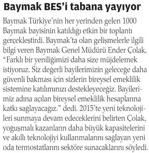 BAYMAK BES'İ TABANA YAYIYOR 01.02.2015 Zaman