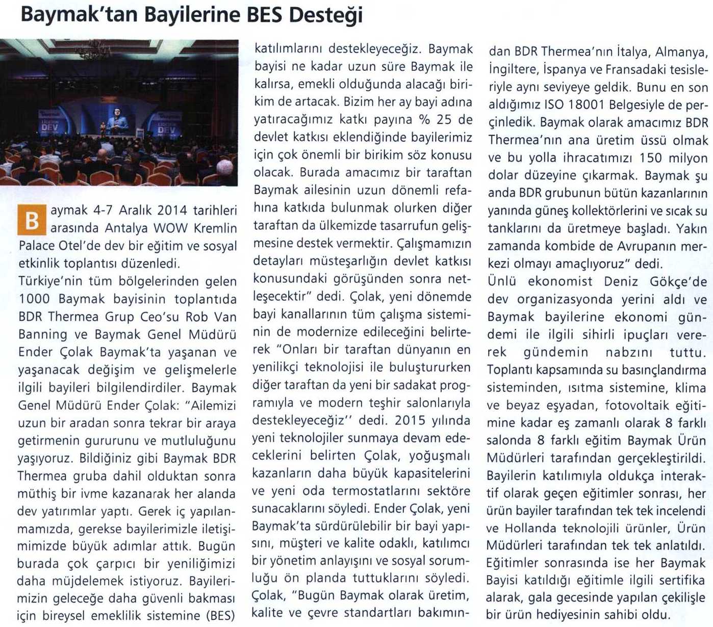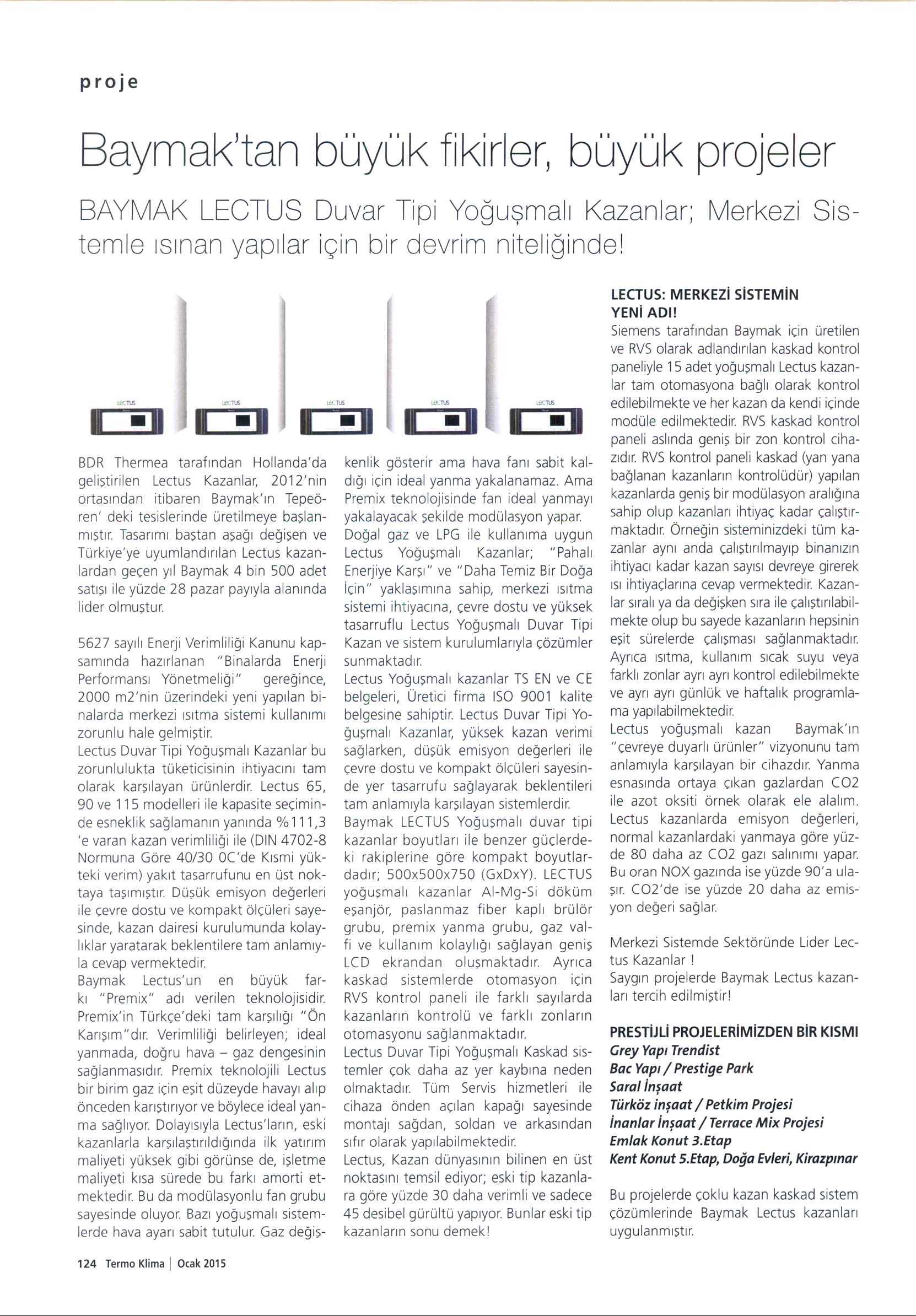 BAYMAK TAN BÜYÜK FİKİRLER, BÜYÜK PROJELER 01.01.2015 Termoklima