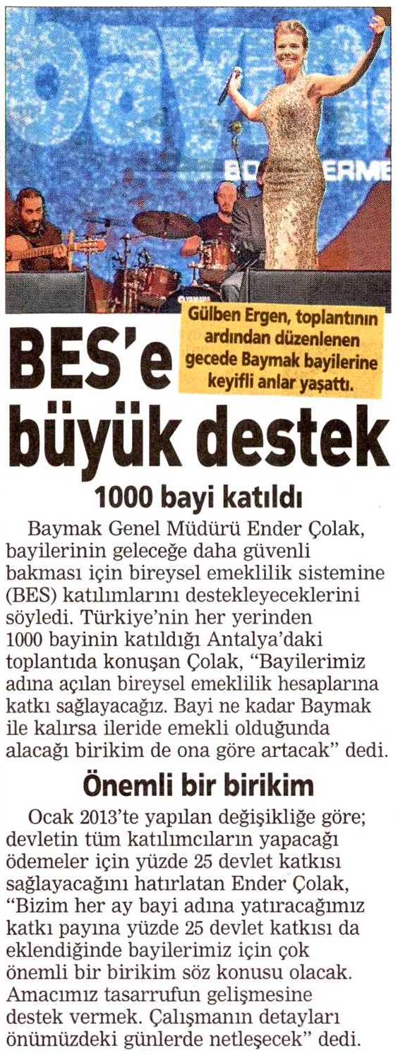 BES'E BÜYÜK DESTEK 01.01.2015 Posta