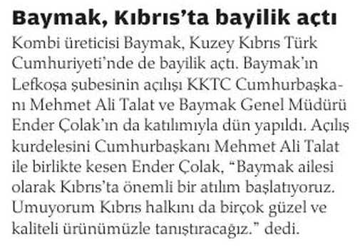 BAYMAK, KIBRIS'TA BAYİLİK AÇTI 11.01.2014 Zaman