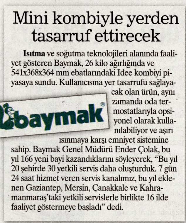BAYMAK'TAN 'KOMBİYİ YENİDEN TANIMLAYAN' TEKNOLOJİ 07.11.2013 Aydınlık Gazetesi