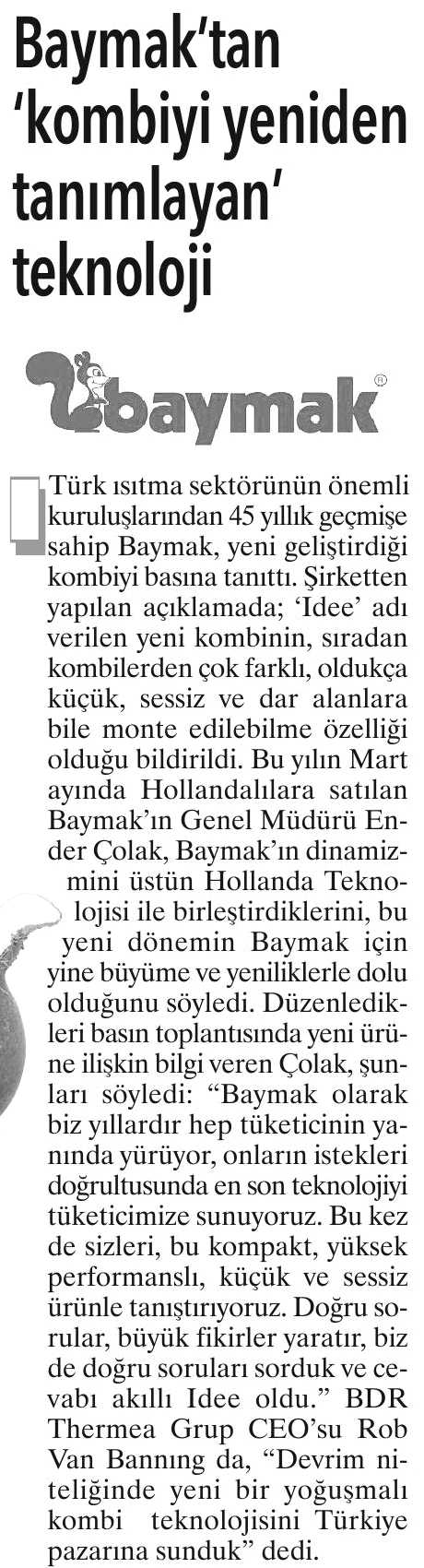 BAYMAK, GAZETE SAYFASI BÜYÜKLÜĞÜNDE KOMBİ ÜRETTİ 01.11.2013 Dünya