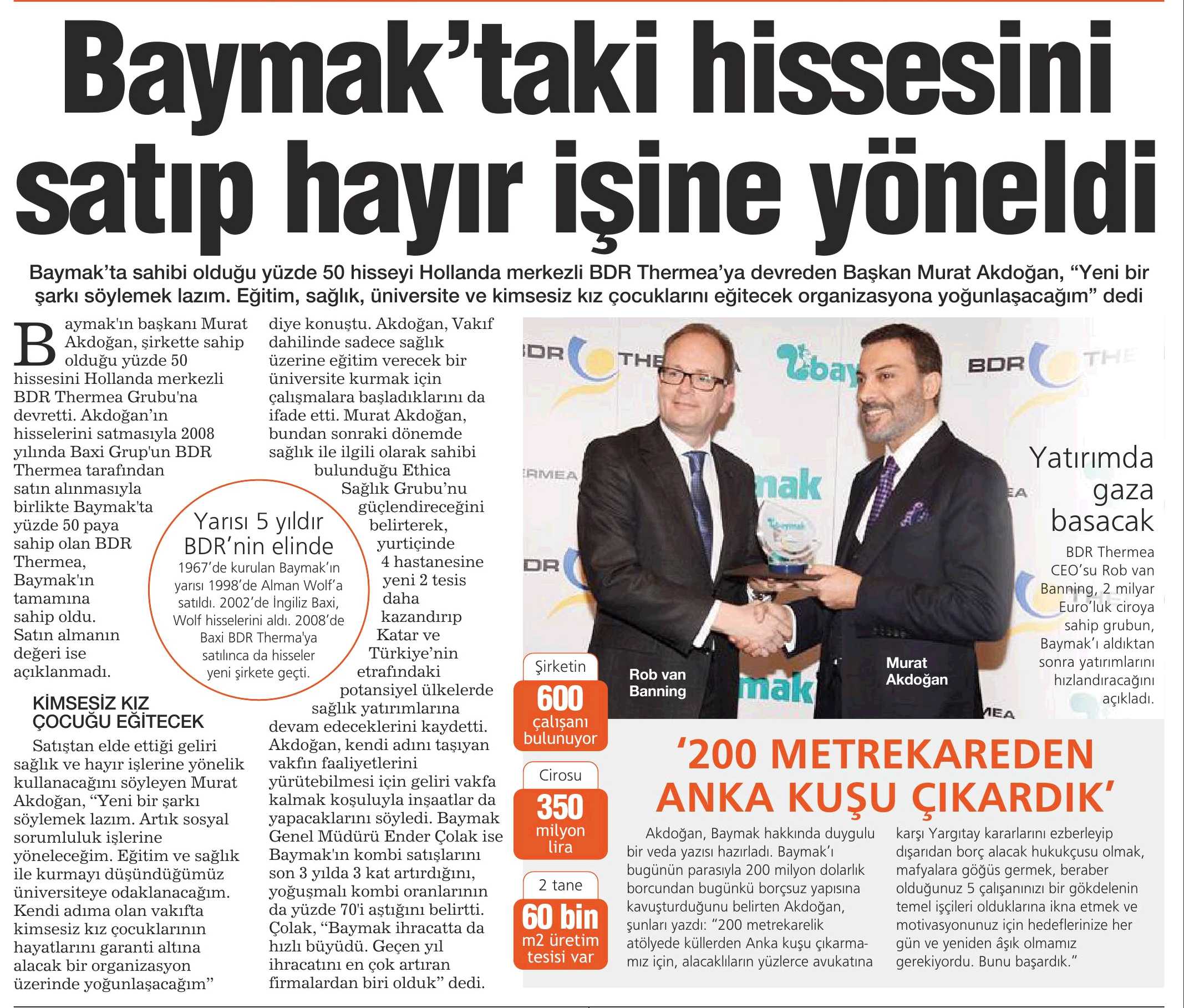 BAYMAK'I ORTAĞINA SATTI, PARAYI VAKFINA HARCAYACAK 28.03.2013 Posta