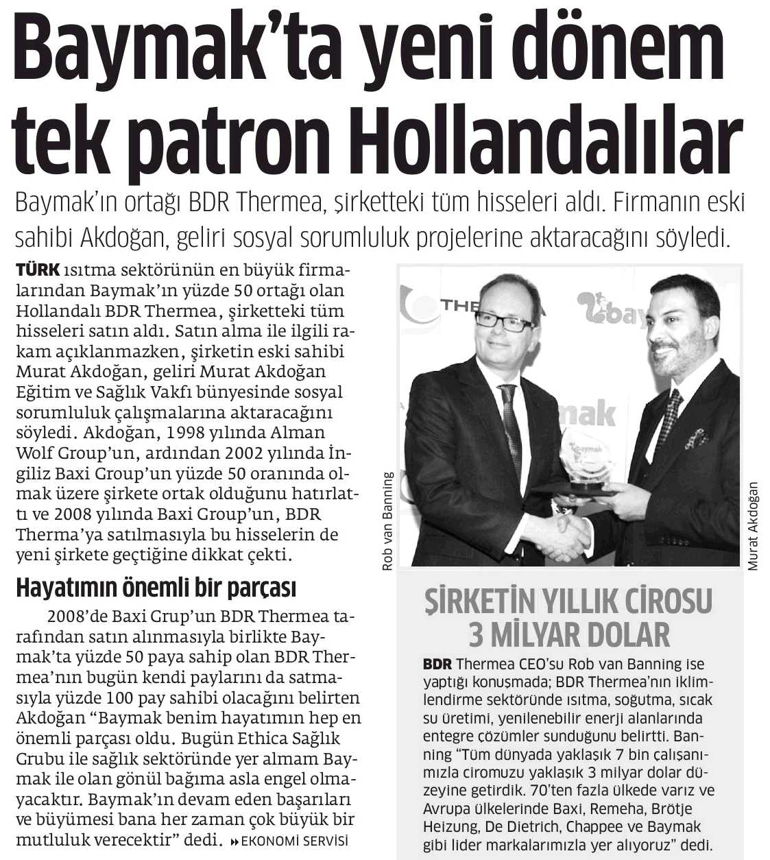 DÜNYA DEVİ THERMEA BAYMAK'I SATIN ALDI 28.03.2013 Sabah