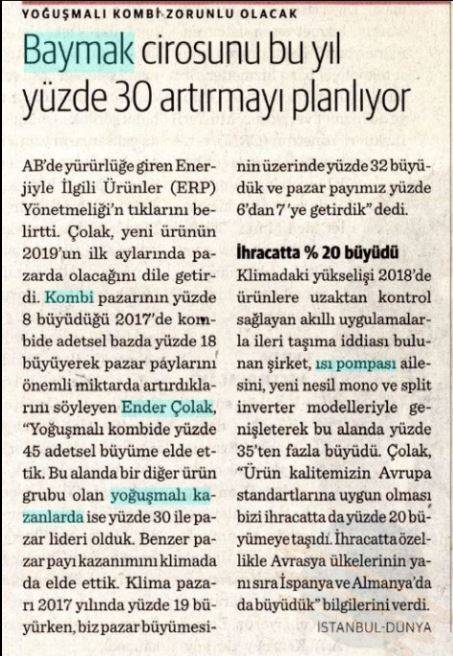 Baymak Yerli Kombi İle Dünya Ülkerini Isıtacak 7.05.2018 Akşam
