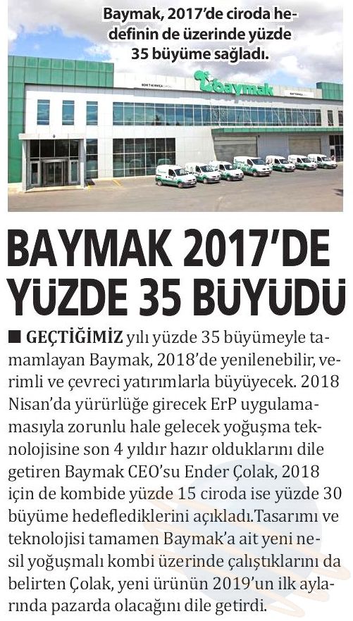 Baymak 2017 de yüzde 35 Büyüdü 13.02.2018 Güneş