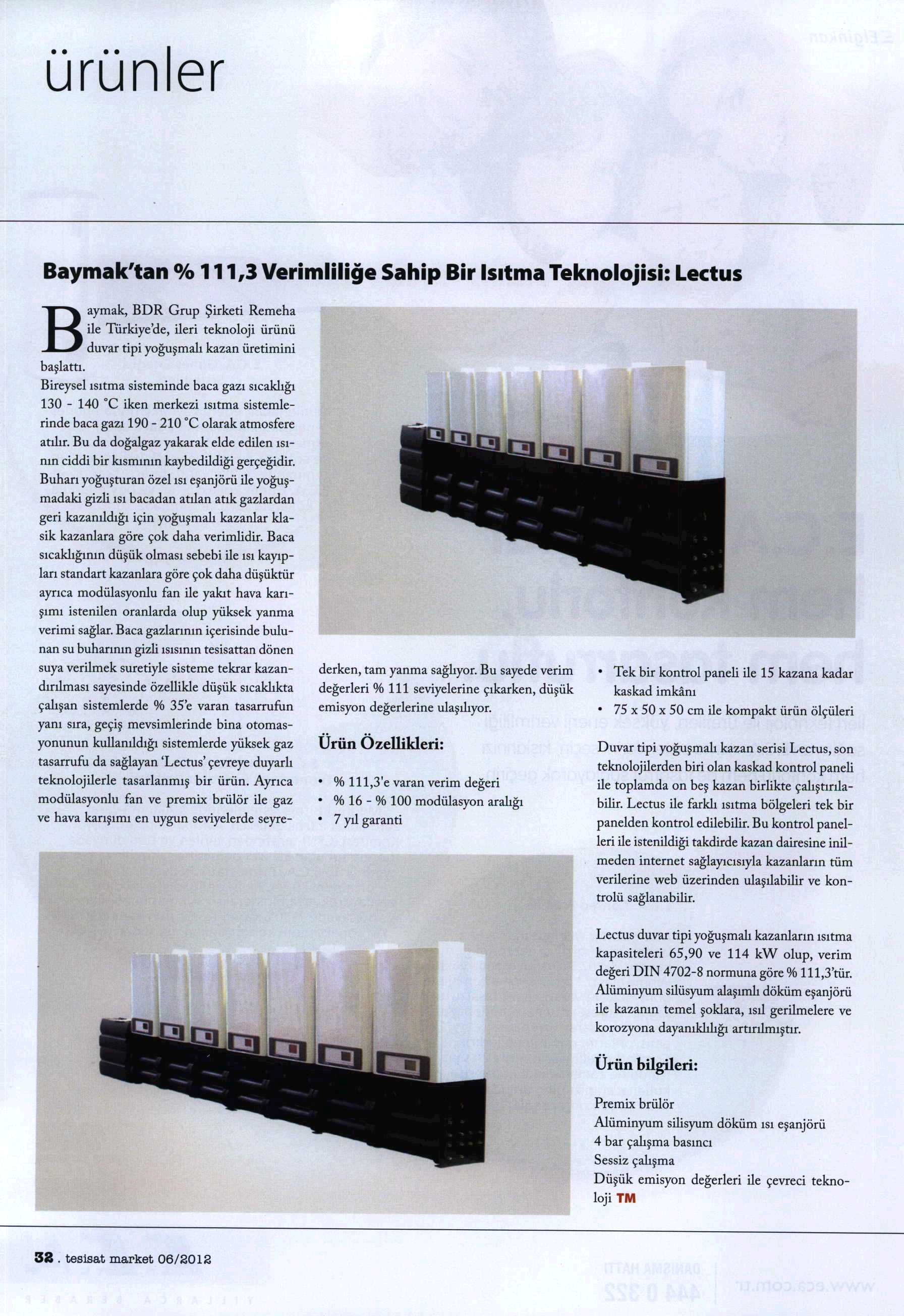 BAYMAK'TAN % 111,3 VERİMLİLİĞE SAHİP BİR ISITMA TEKNOLOJİSİ: LECTUS 01.06.2012 Tesisat Market