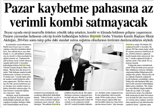 Pazar kaybetme pahasına az verimli kombi satmayacak 19.04.2012 İstanbul Gazetesi