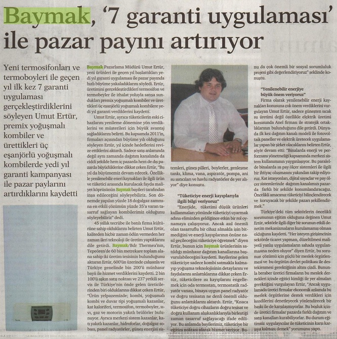 Baymak, "7 garanti uygulaması" ile pazar payını arttırıyor 02.05.2012 Dünya Ekonomi-Politika Özel