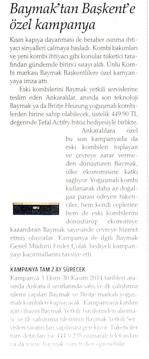 BAYMAK'TAN BAŞKENT'E ÖZEL KAMPANYA 18.10.2014 Zaman-Ankara