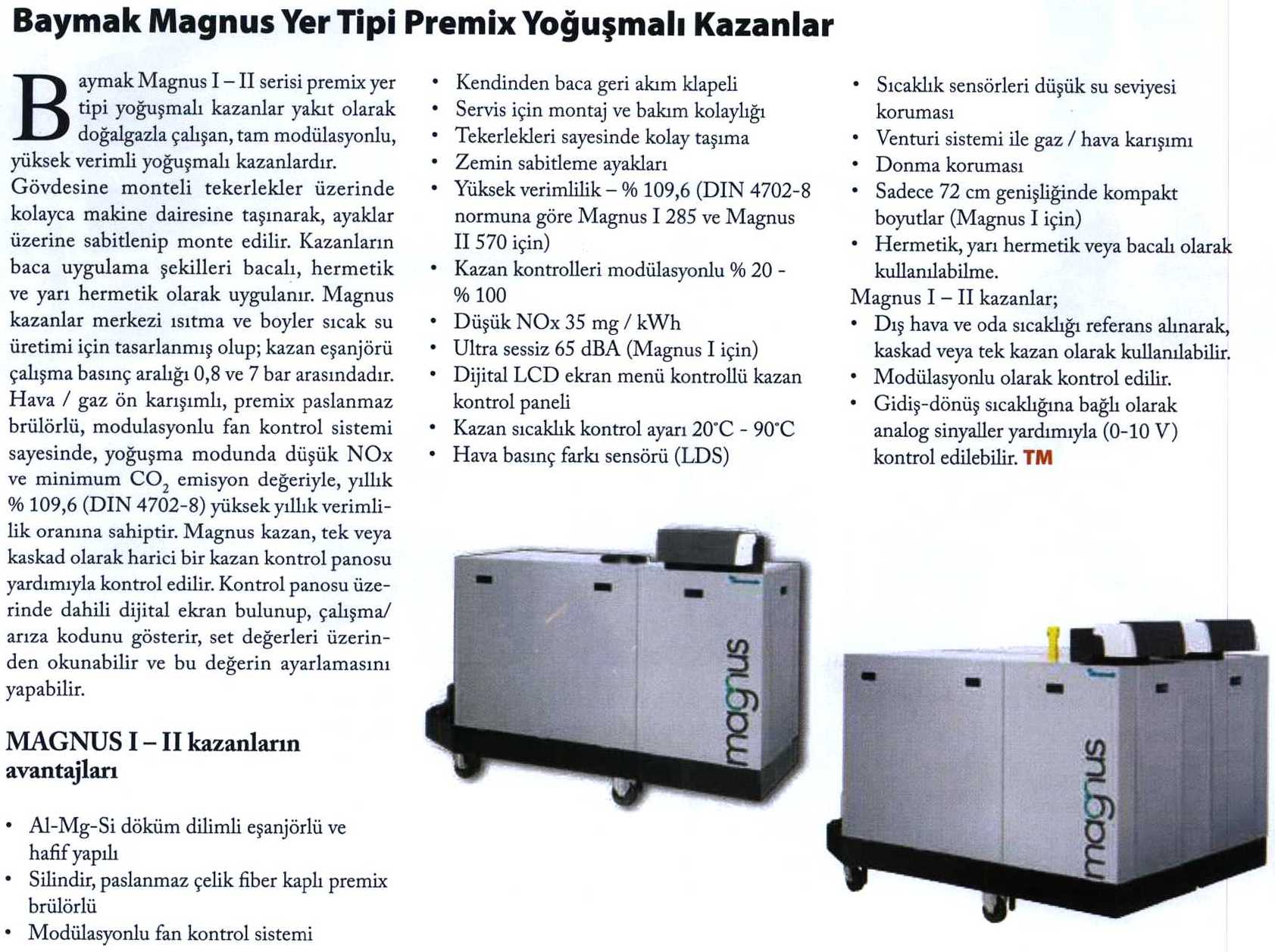 MAGNUS YER TİPİ PREMİX YOĞUŞMALI KAZANLAR 01.12.2014 Tesisat Market