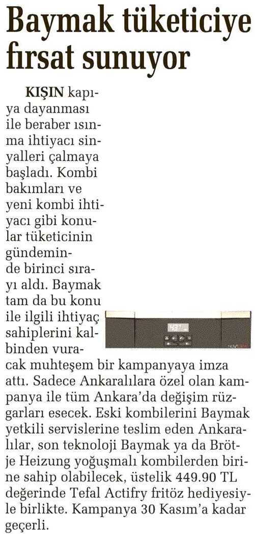 BAYMAK TÜKETİCİYE FIRSAT SUNUYOR 21.10.2014 Sabah-Ankara